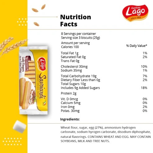 Delight in the classic taste of Lago 1968 Savoiardi Lady Fingers. These light and airy biscuits are perfect for making traditional tiramisu, layering in desserts, or enjoying on their own with a cup of coffee or tea. Made with high-quality ingredients, these lady fingers offer a delicate texture and subtle sweetness that make them a versatile addition to any pantry.